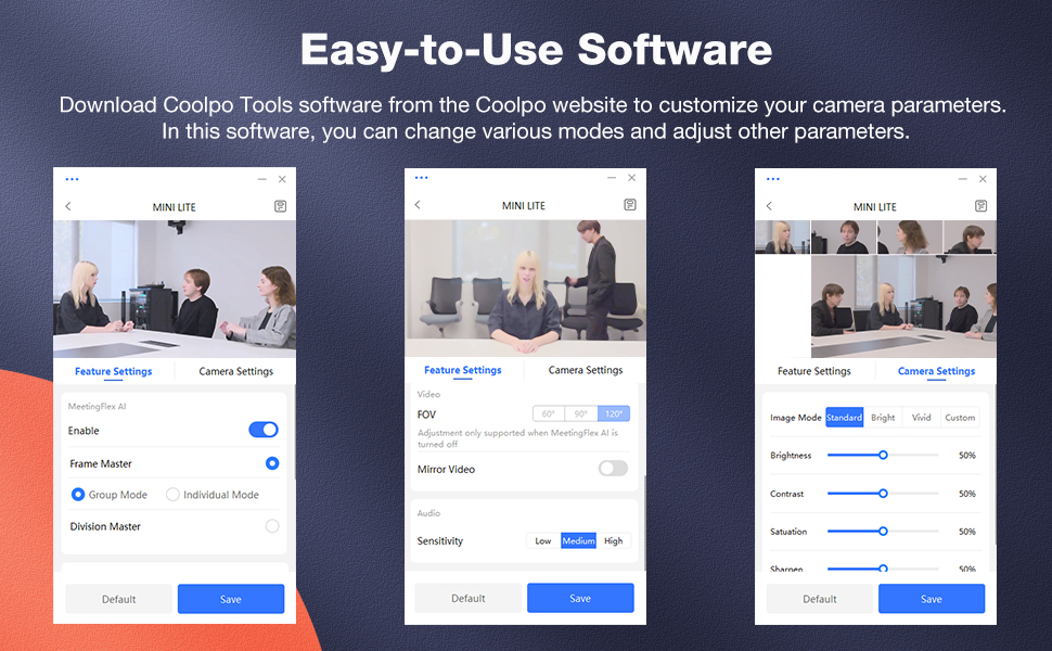 CoolpoTools for Mini Lite allows you to configure the different AI and non-AI settings of this compact wide angle video conference camera, making it the perfect tool for enhancing your conference room webcam experience.