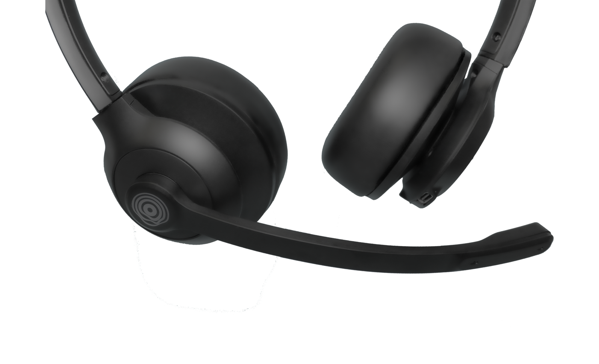 Discrete noise-canceling boom with Acoustic Fence technology; smart sensors for auto-mute/unmute.