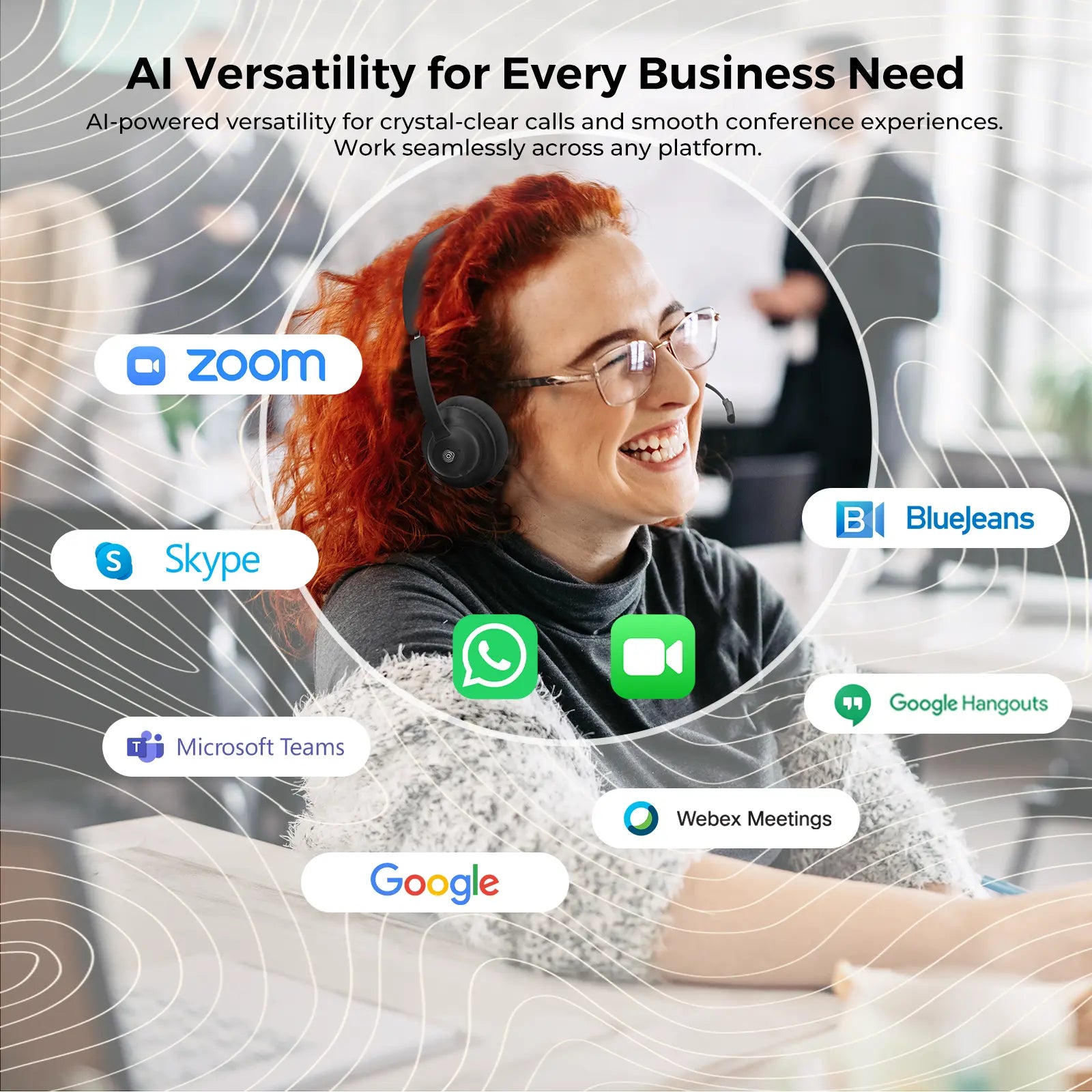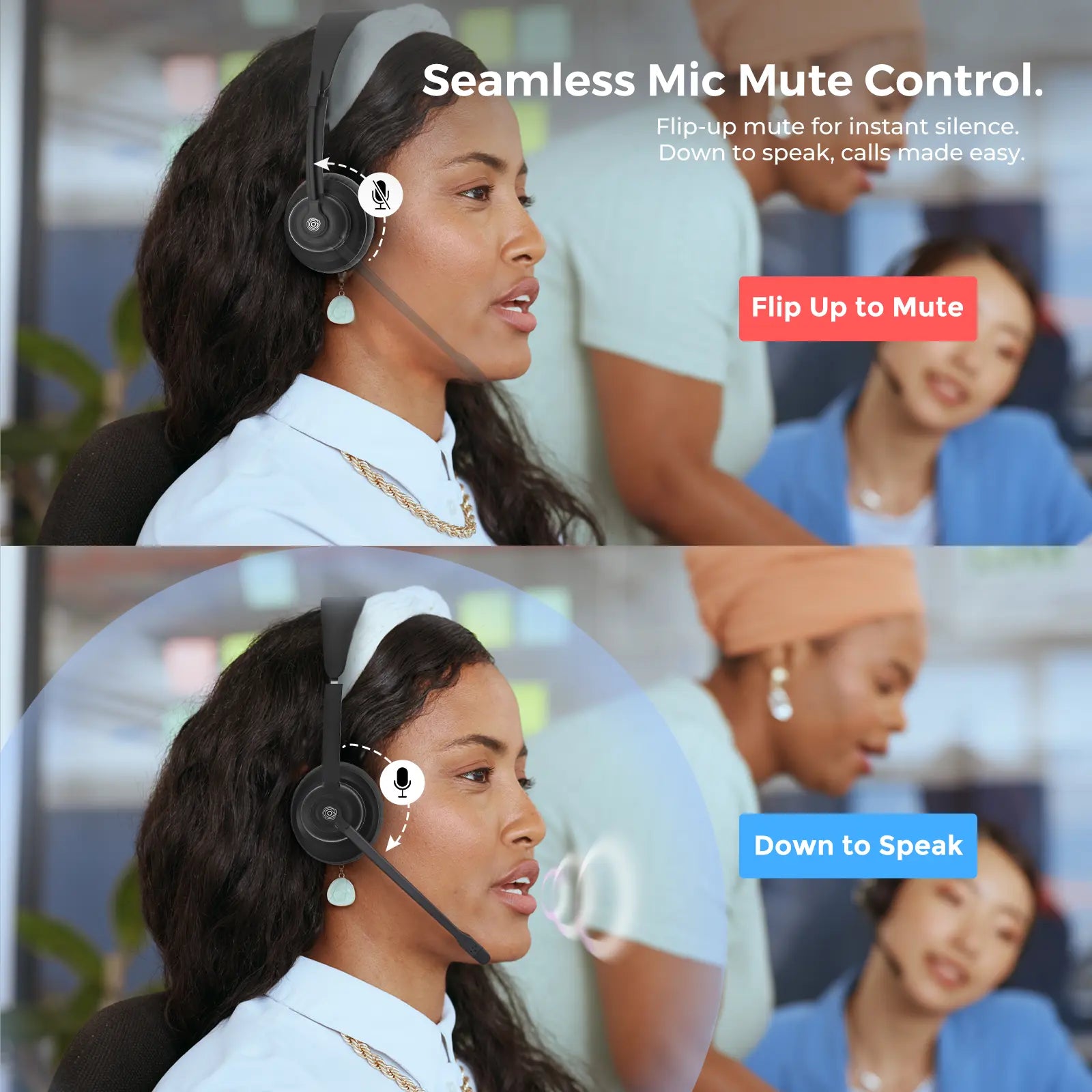 Eliminate background noise on your end with COOLPO Stand alone AI Chip featuring an AI Noise Canceling Microphone. COOLPO wireless headset with microphone ensures your voice is clear and free from distractions, perfect for any office environment.
